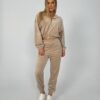 Bluza z eleganckim złotym zamkiem, dopasowana w talii, pięknie podkreśla figurę. Spodnie o kroju slim z szerokim pasem modelującym i funkcjonalnymi kieszeniami są idealne zarówno na aktywny dzień, jak i na bardziej casualowe wyjścia.