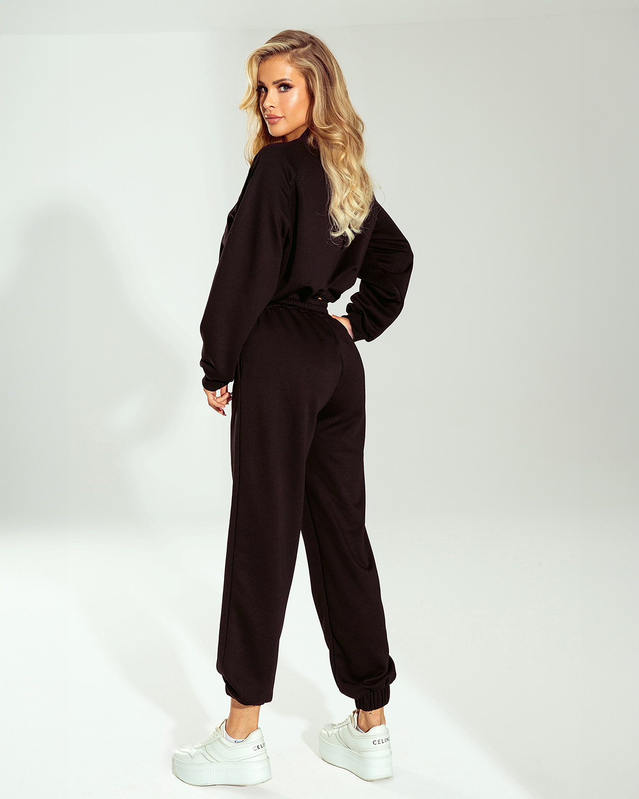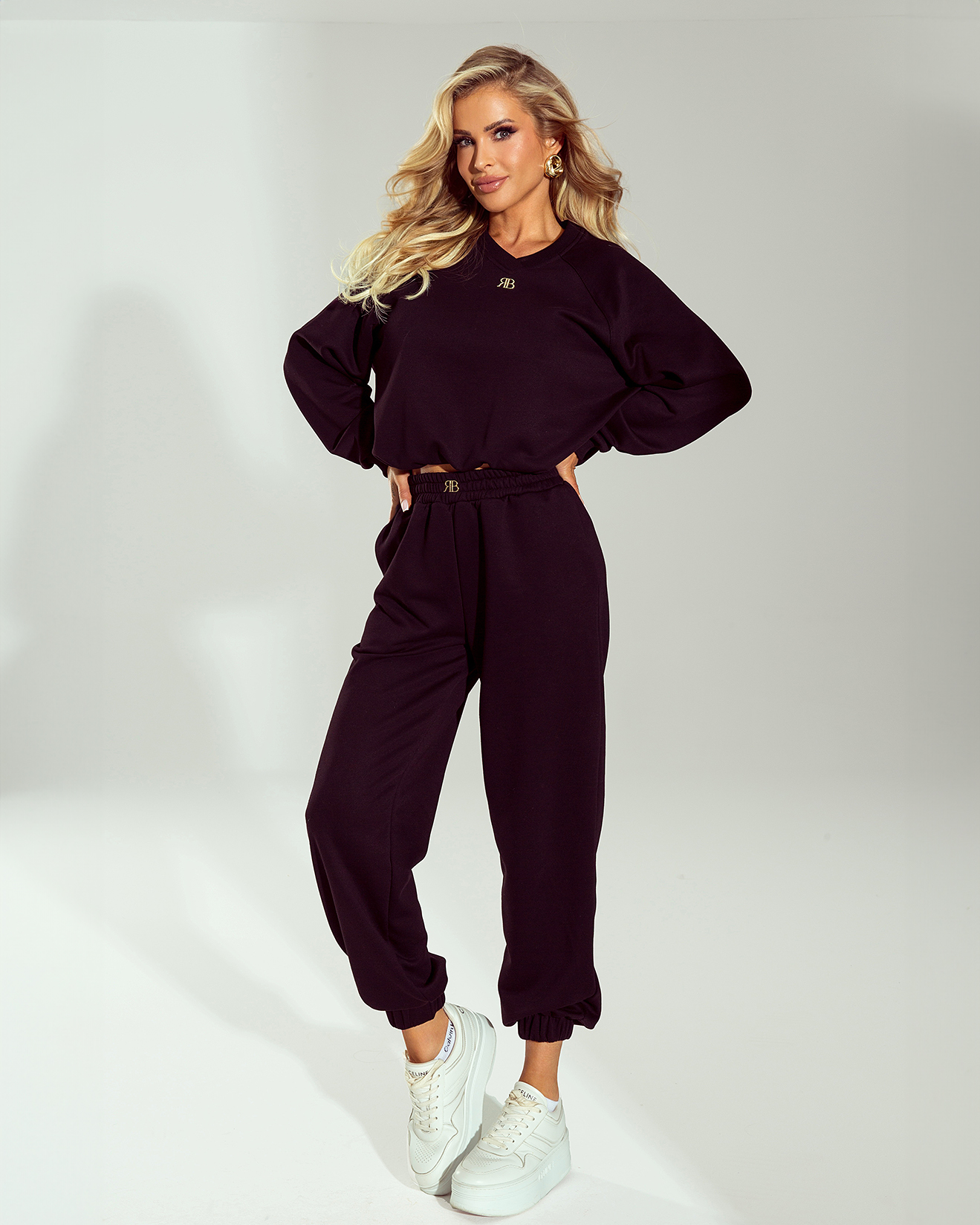 Dres Eclipse to minimalistyczny, a zarazem kobiecy zestaw, który doskonale sprawdzi się zarówno w domowych stylizacjach, jak i podczas wyjść do miasta. Bluza z dekoltem w kształcie litery V ma luźny, modny fason, a spodnie typu jogger z elastyczną talią i ściągaczami zapewniają wygodę oraz świetne dopasowanie. Całość uszyta została z wysokiej jakości, naturalnej bawełny, dzięki czemu dres jest miękki, przewiewny i komfortowy w noszeniu. Złote detale RB subtelnie podkreślają luksusowy charakter zestawu.