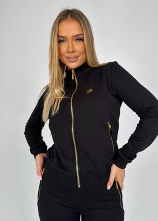 Czarny komplet dresowy damski Motion od Ricco&Bella to klasyczny zestaw składający się z bluzy na zamek i spodni o zwężanych nogawkach. Wykonany w całości z wysokiej jakości bawełny, zapewnia oddychalność, wygodę i trwałość. Stylowe detale w postaci złotych zamków i logo dodają mu eleganckiego charakteru, który wyróżnia go spośród typowych kompletów sportowych. Doskonale sprawdzi się zarówno podczas aktywności fizycznej, jak i w casualowych, codziennych stylizacjach. Zaprojektowany i uszyty w Polsce, jest gwarancją jakości i staranności wykonania.