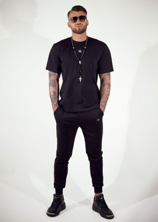 Czarny t-shirt OFF od Ricco&Bella to must-have w każdej męskiej szafie. Klasyczny krój, głęboka czerń i elastyczny materiał zapewniają pełen komfort i uniwersalny styl.